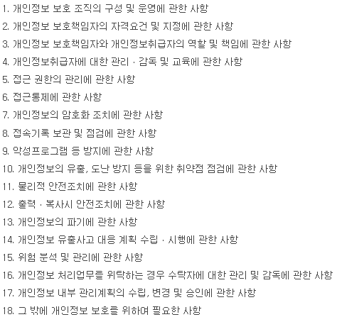 개인정보의 안전성 확보조치 기준 제4조(내부 관리계획의 수립·시행 및 점검)